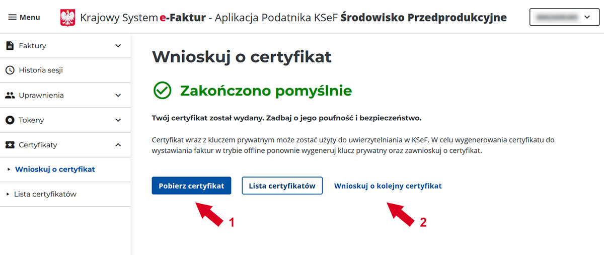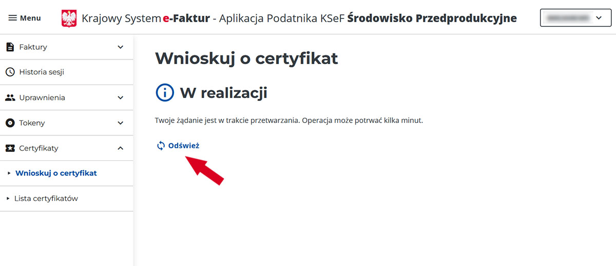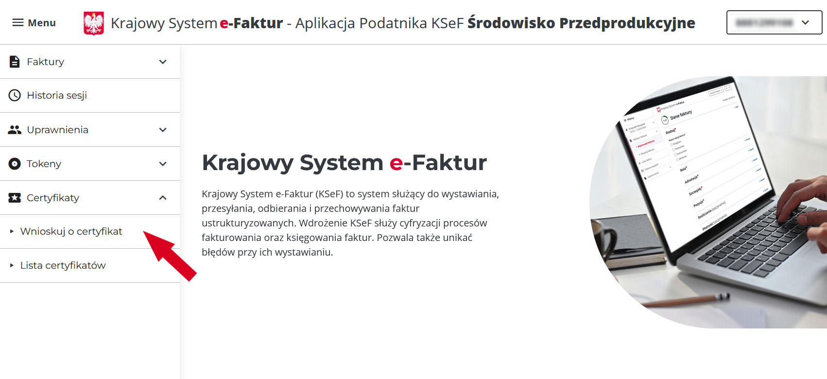 Aby wygenerować certyfikaty dla Środowiska Przedprodukcyjnego KSeF proszę kliknąć na ten link: